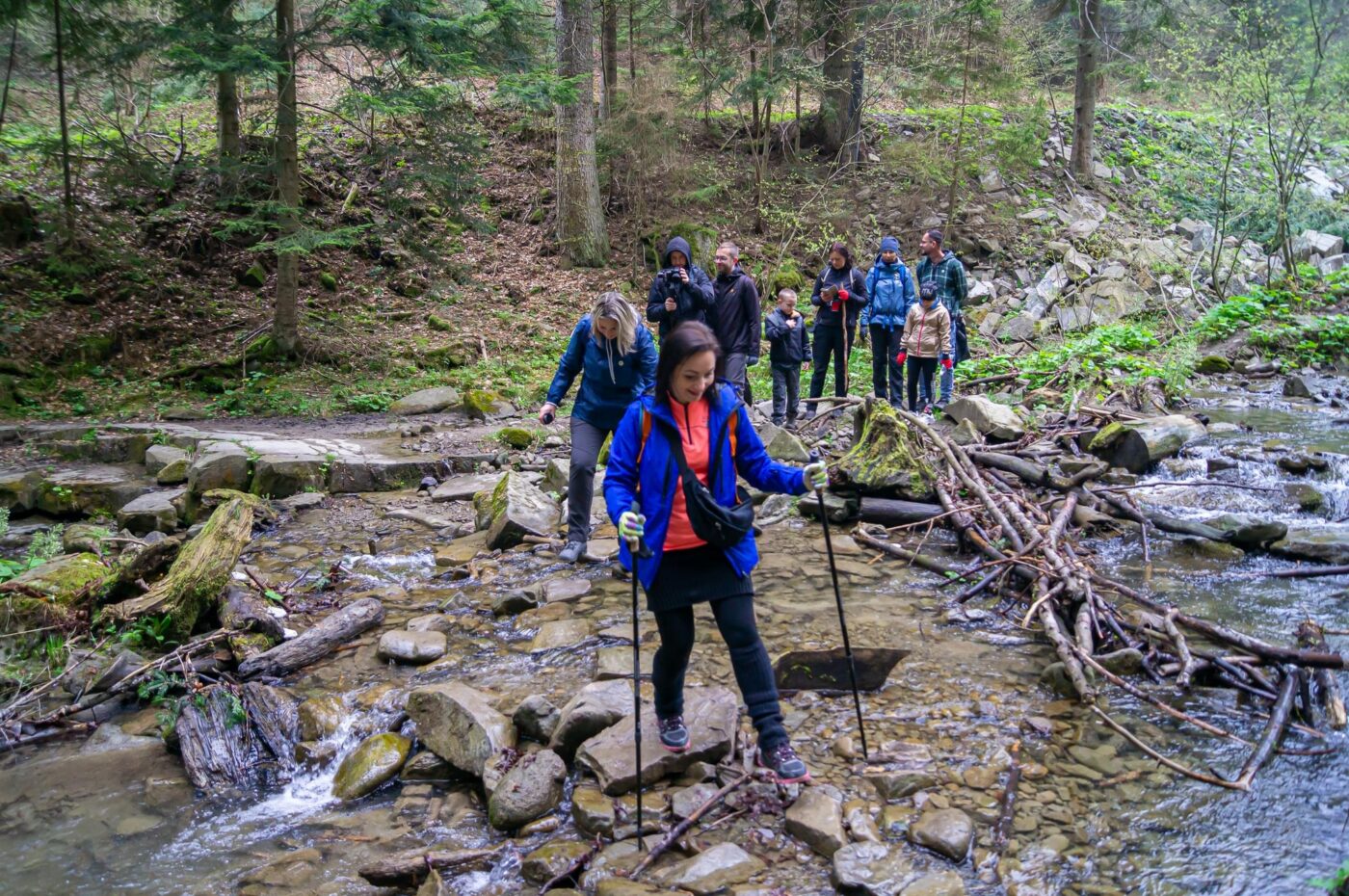 Tradycyjnie naszym przewodnikiem była Zuzanna Długosz, czyli słynna Baba z gór. Dzięki niej dziś poznaliśmy wiele ciekawostek przyrodniczych. M.in. rozmawialiśmy o szkółkach leśnych, salamandrach plamistych, ślimakach winniczkach oraz fliszu karpackim. Gościem specjalnym wędrówki była Małgorzata Polańska-Kubiak, z grupy Przestrzenne tkactwo Czarnych Górali. Artystka ludowa opowiedziała nam historie związane z rękawicami furmańskimi oraz przybliżyła sposób ich tkania. Wycieczkę zakończyło wspólne ognisko z pieczeniem kiełbasek i kosztowaniem smakołyków przygotowanych przez naszych wolontariuszy.